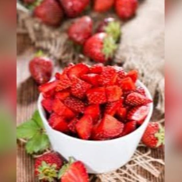 Salada de frutas com morango, banana, mamão, melão, abacaxi, manga e uva, acompanhada de sorvete do sabor de sua escolha.