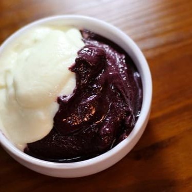 Nosso delicioso milkshake de Mirtilo é feito com sorvete de creme e uma saborosa calda de mirtilo natural.