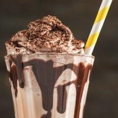 Nosso delícioso milkshake de Galak contém sorvete de creme, leite e uma base de chocolate Galak.