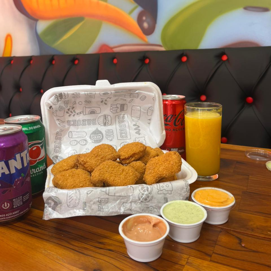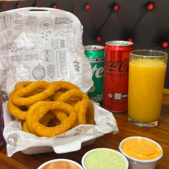 Batata frita, nuggets e anel de cebola; Serve de 1 á 2 pessoas.