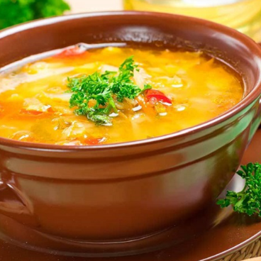 Caldo de Mocotó, acompanha farinha de mandioca e pimenta biquinho.