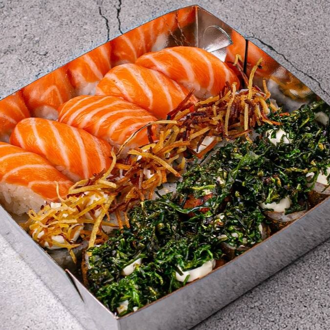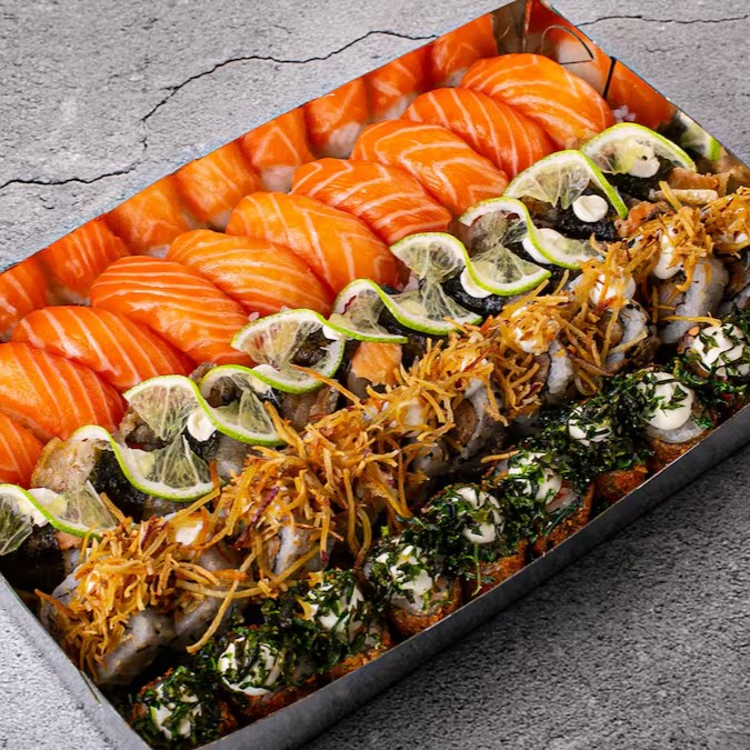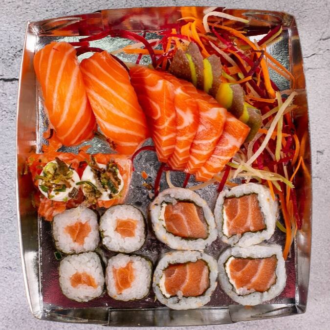 5 Niguiri De Salmão + 5 Uramaki + 10 Hotroll