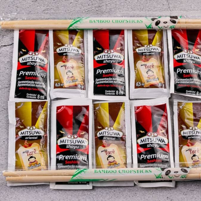 Kit com 5 shoyu + 5 tarê + hashi