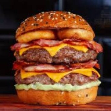 Pão de brioche, dois hamburgueres artesanal 120g, mussarela, presunto, bacon, ovo, rodelas de tomate, alface e maionese especial.