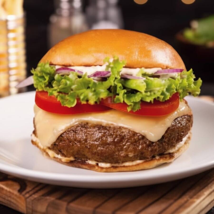 Pão de brioche, hamburguer artesanal 120g, queijo prato, molho da casa, rodelas de tomate e alface americano.
