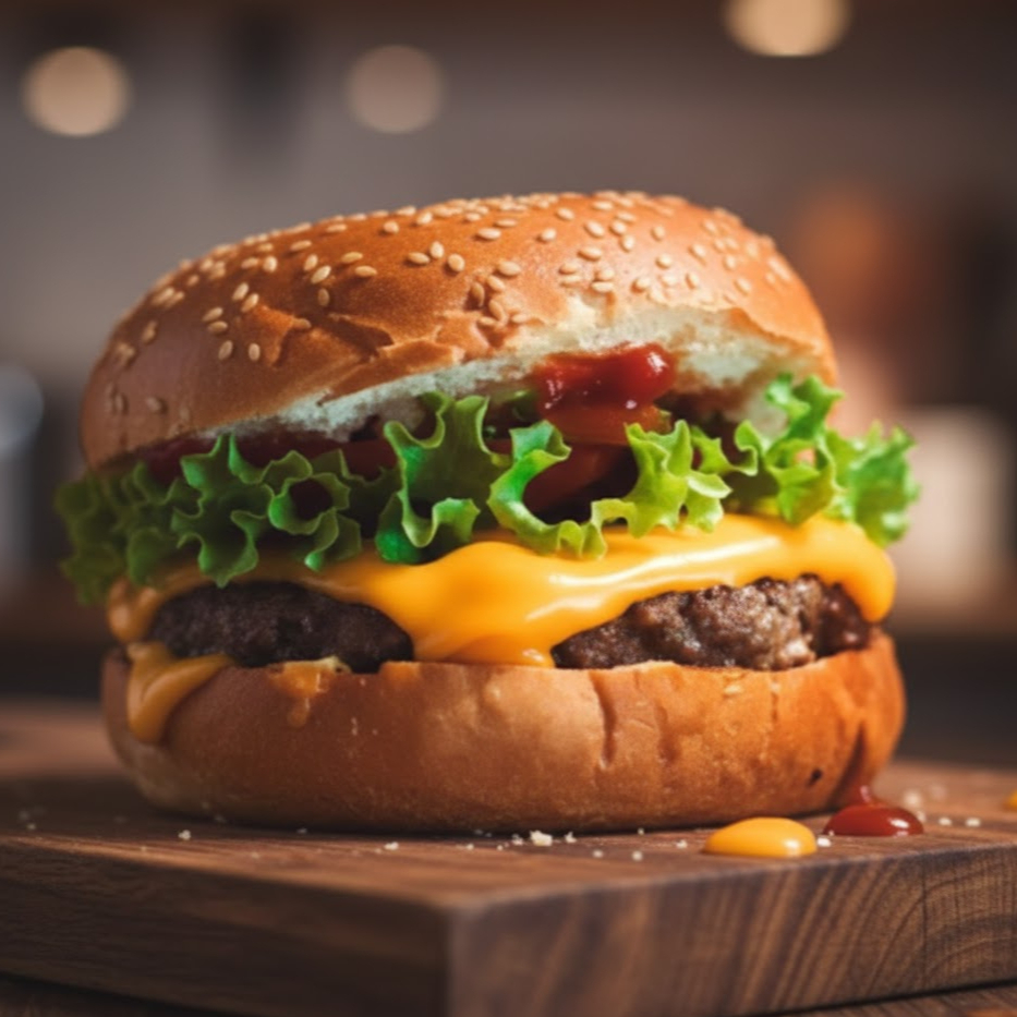 Pão de brioche, hamburguer artesanal 120g, cheddar da casa, tomate, e alface americano.