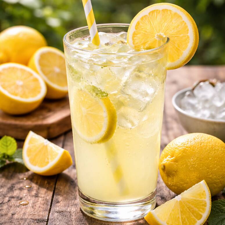 Suco de morango fresco combinado com limão, perfeito para um dia quente, sem açúcar.