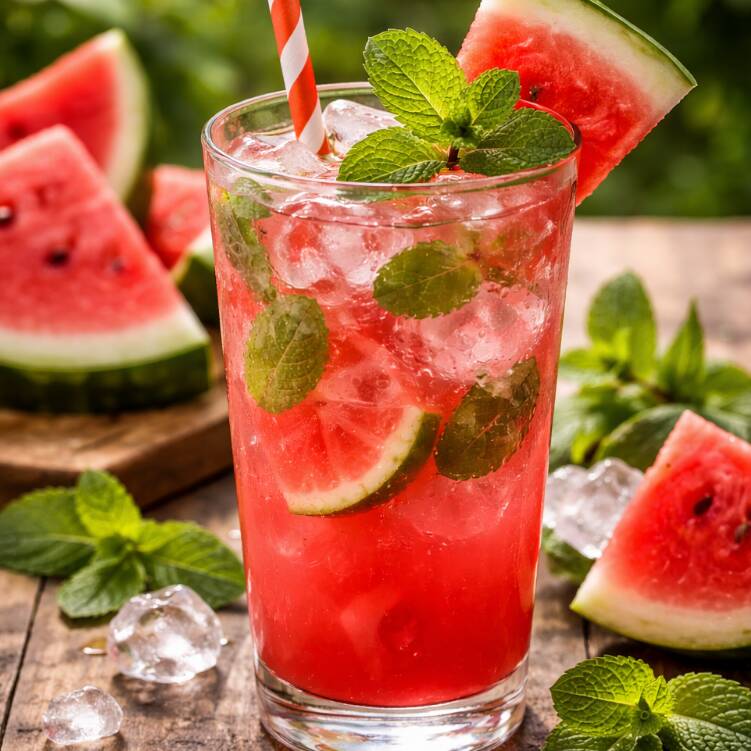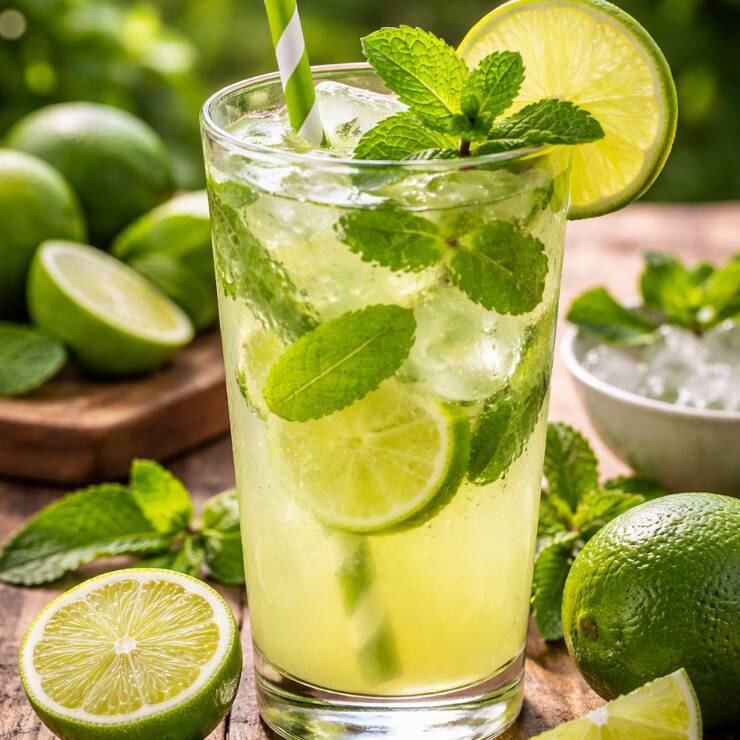 Refrescante suco de abacaxi com um toque de hortelã, perfeito para um dia quente.