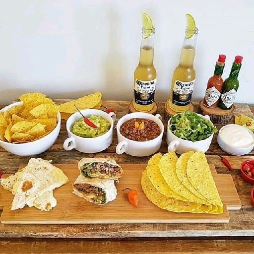 Kit festa mexicana para 10 pessoas 1.k de chilli 1.k de Guacamole 1000ml sour cream 3 pacotes de nachos de 500 gramas cada 24 unidades de tacos crocante Atenção apenas para pedidos agendandos com 2 horas de antecedência O chilli vai gelado Basta aquecer Todos vão em embalagem de isopor