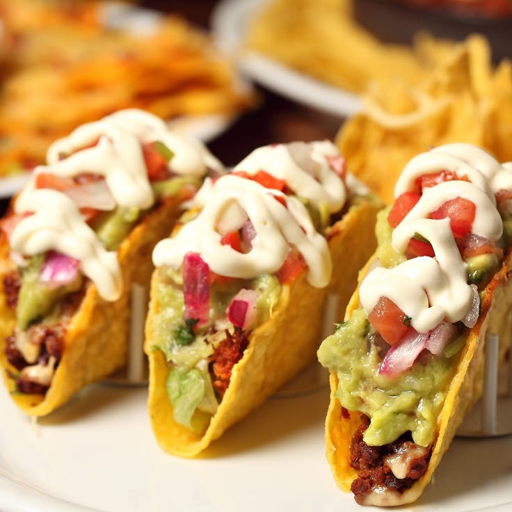 Tacos Crocantes com Chilli, Guacamole e Sour Cream Tacos crocantes com chilli de carne e feijão. Acompanha guacamole e sour cream enviados separados para manter a crocância. 🌮✨ Foto ilustrativa