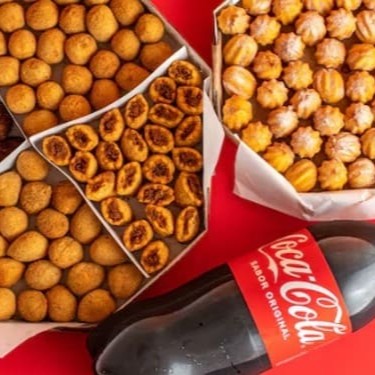 Perfeito para compartilhar, este combo traz 80 salgadinhos de 20g, irresistíveis e na medida certa para qualquer ocasião! Acompanham dois molhos especiais para dar aquele toque extra de sabor e uma Coca-Cola de 2 litros para refrescar a experiência. Ideal para encontros e comemorações, é a pedida certeira para agradar a todos!