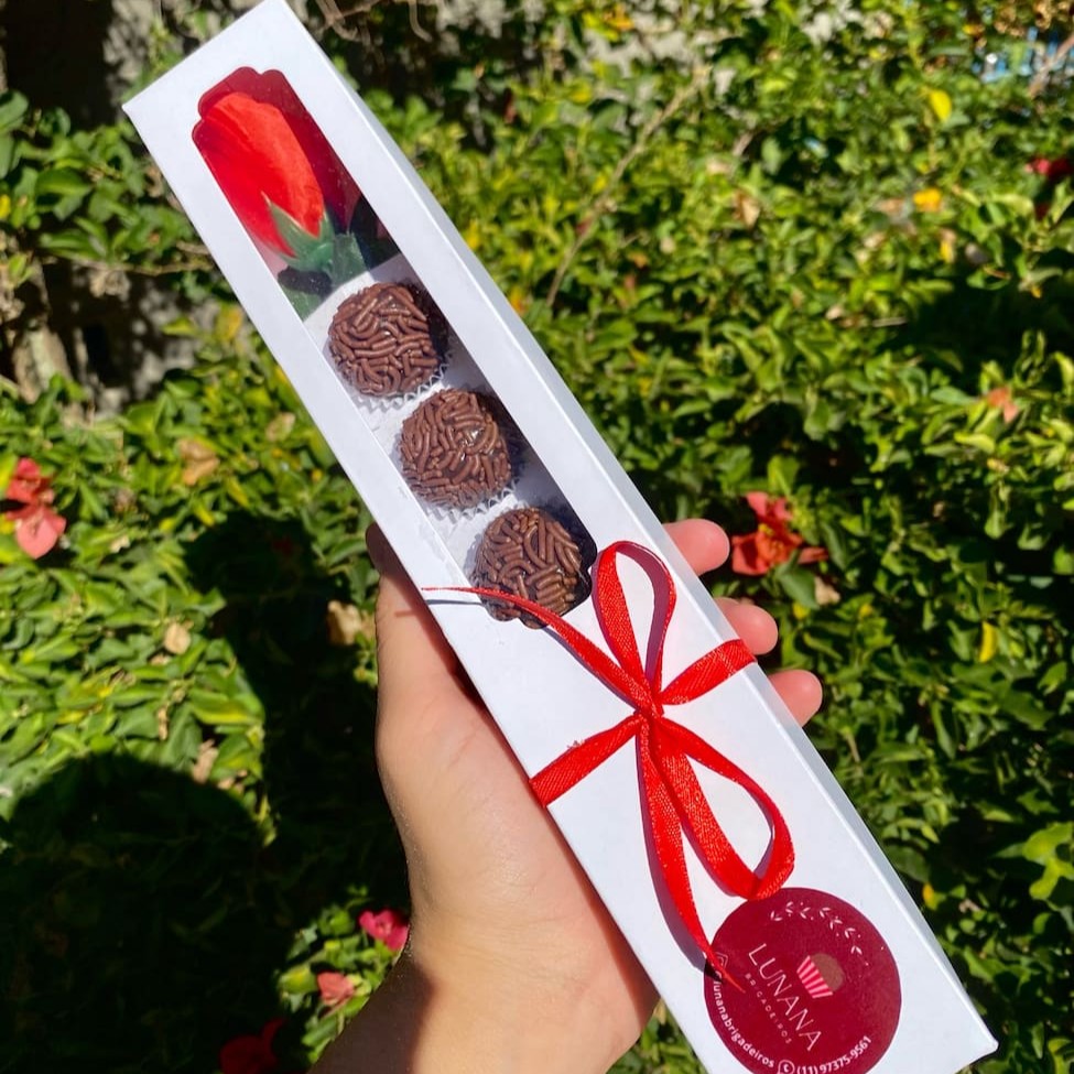 Uma bela rosa artificial, acompanhada por seis irresistíveis brigadeiros. Perfeita para presentear alguém especial ou para saborear momentos doces e encantadores.