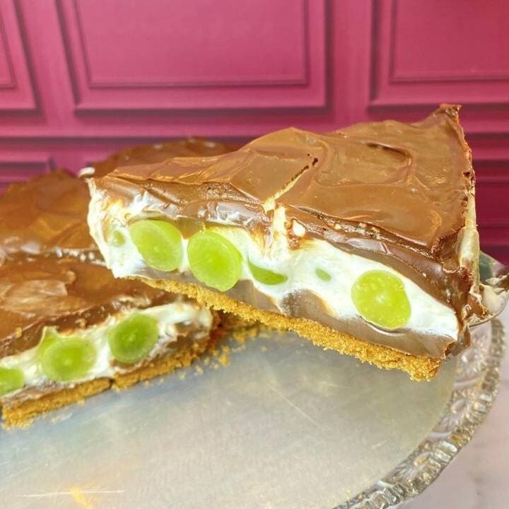 Brownie macio, com creme de pistache super cremoso e finalizado com pedaços crocantes de pistache. Uma delícia elegante e cheia de personalidade!