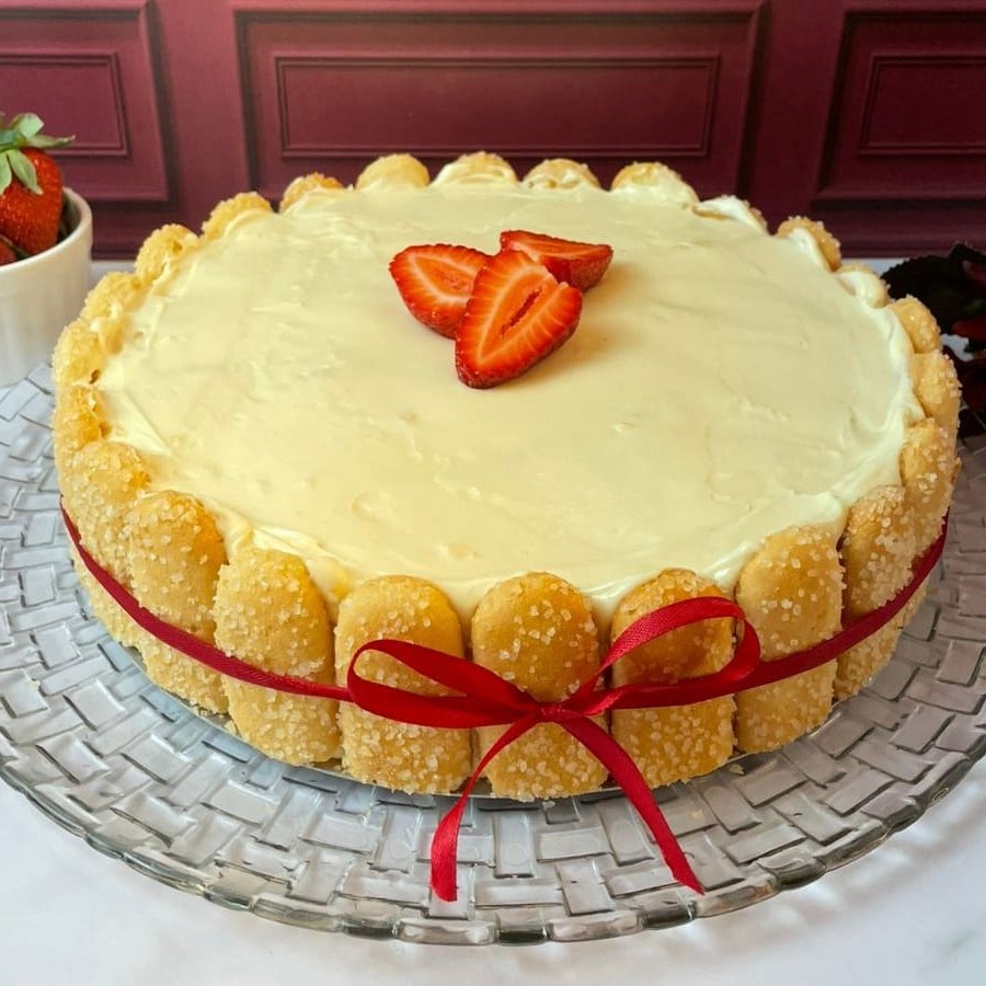 Uma sobremesa sofisticada e deliciosa: base delicada de champanhe combinada com um creme suave de Ninho e morangos frescos. Uma torta perfeita para quem ama sabores refinados e marcantes!
