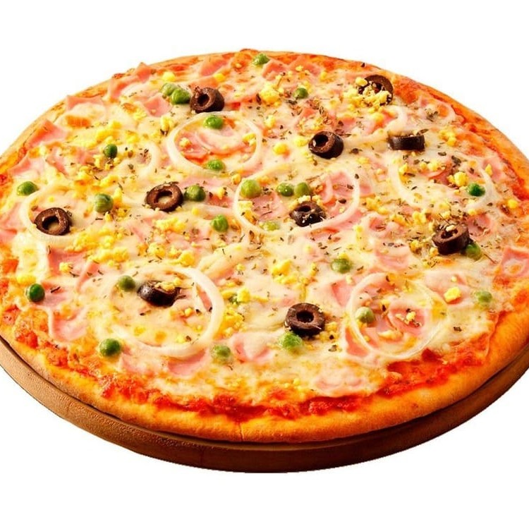 Presunto, ovos, ervilha, cebola e mussarela.