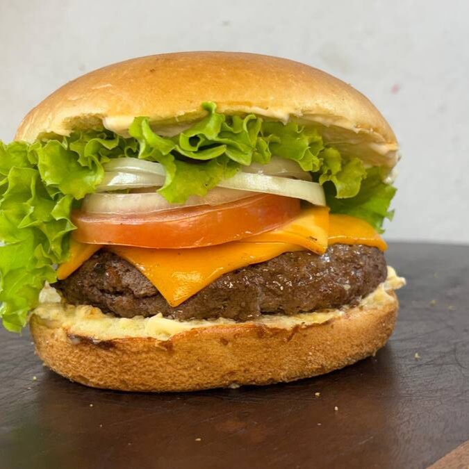 Pão, Maionese, Molho, Queijo (Cheddar), Alface, Tomate e 1 Carne