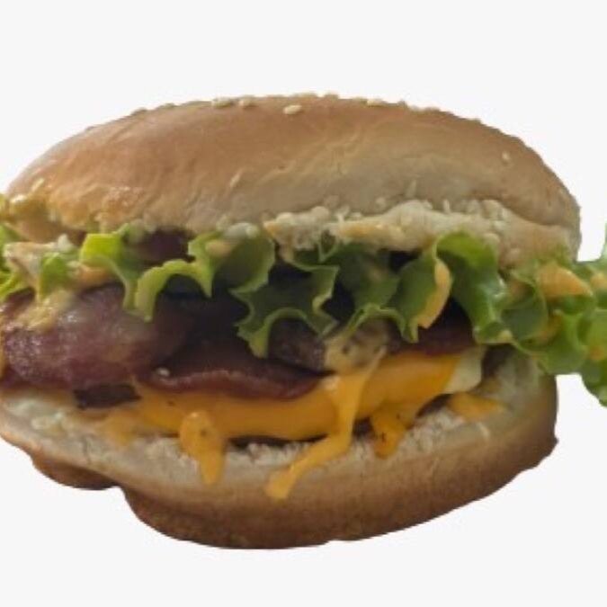 Pão, Maionese, Molho, Queijo (Cheddar), Bacon e 1 Carne