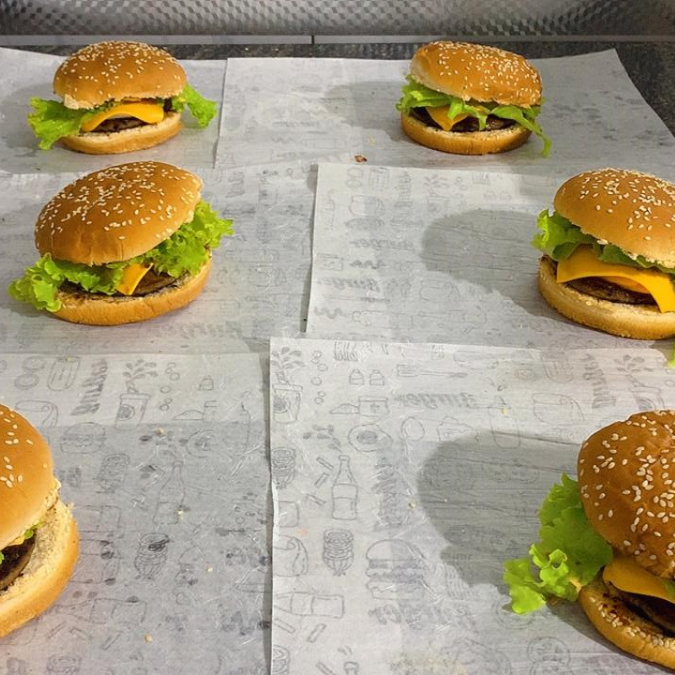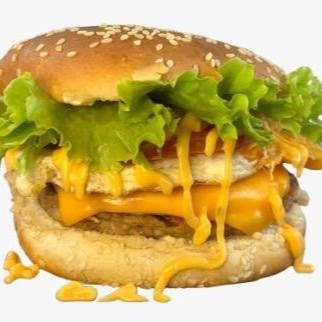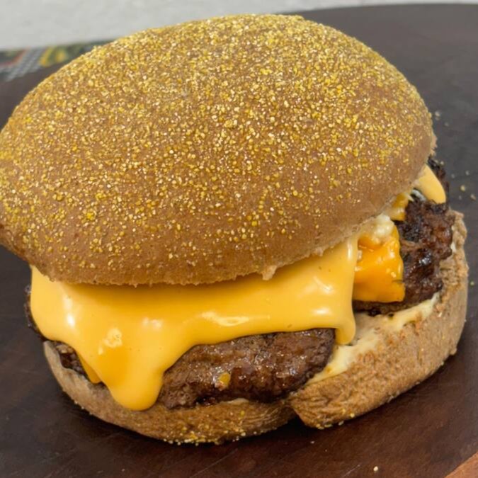 Pão, maionese, molho, Queijo (Cheddar) e 2 Carne