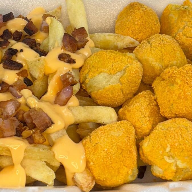 1 X-Bacon + 1 X-Calabresa + 1 Batata pequena com Cheddar e Bacon