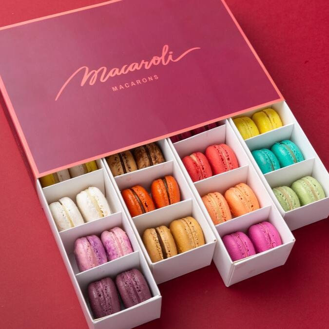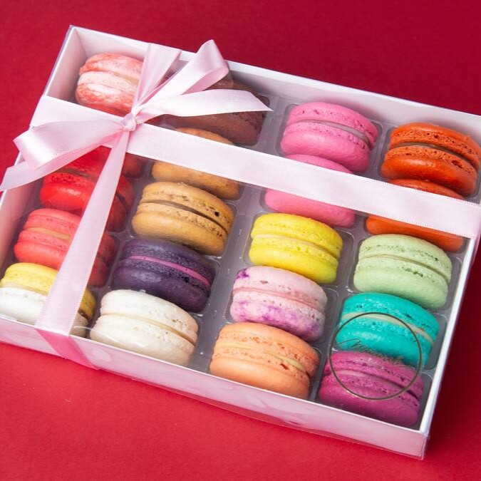 Estojo elegante com 20 macarons à sua escolha, elaborados com receita Original francesa e ingredientes premium.