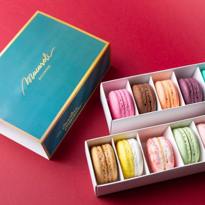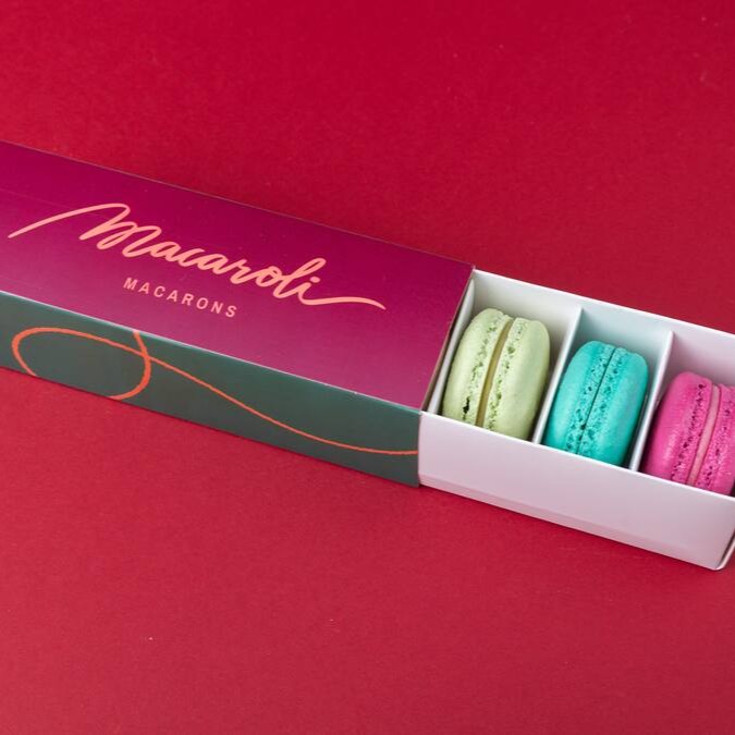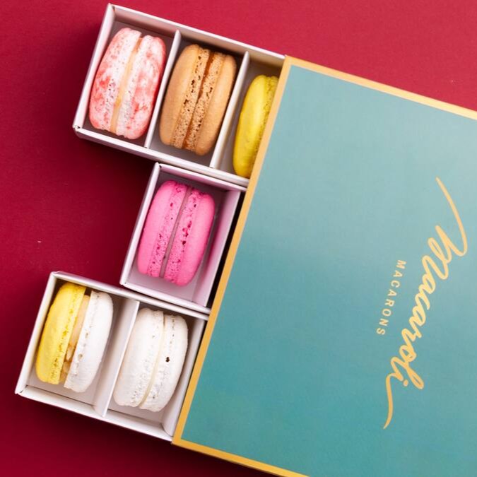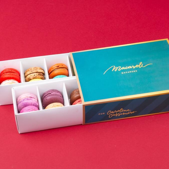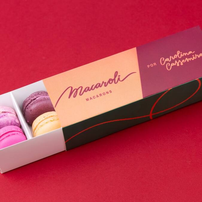Um estojo elegante contendo 5 macarons selecionados por você, preparados com receita Original francesa e ingredientes premium.