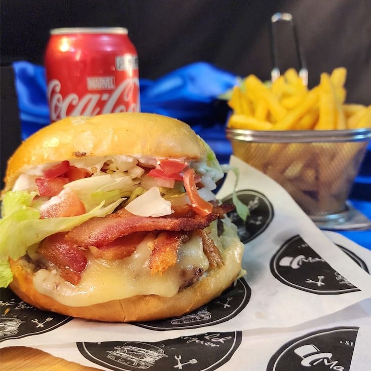Pão Supeemo , Carne de 150 Gramas , Queijo Cheddar , Bacom , Alface Americano ,Molho magic, Tomate E Cebola Roxa