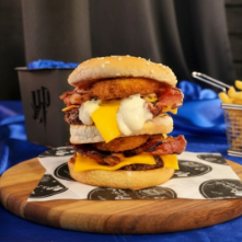 Pão Supremo , 2 carnes de 150 gramas cada, Molho Magic , Bacom , Queijo Cheddar e Onion rings