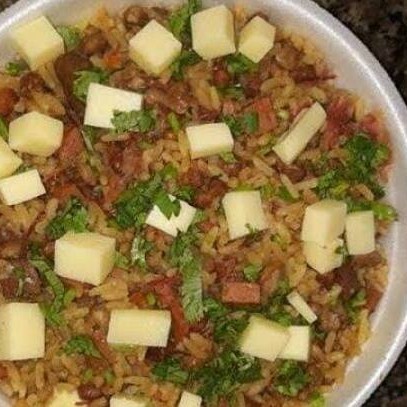 Marmitex Pequena,aproximadamente 400gramas,com arroz,feijão(file de frango,pernil,linguiça e carne,tudo cortadinha com pimentão e cebola)acompanhados de purê de batata ou Batata frita