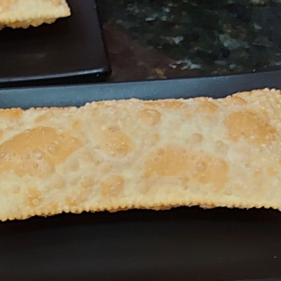 Pastel doce recheado com banana e canela. Pastel sequinho, montado e frito na hora.