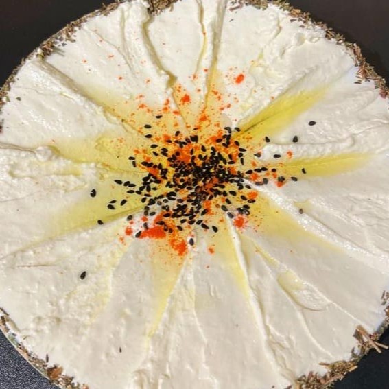Maravilhosa pasta de coalhada seca fresca. Acompanha pão sírio. لبنه