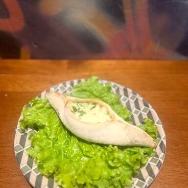 Esfiha recheada com queijo branco, salsa e temperada à moda do cheff. جبنه بيضه