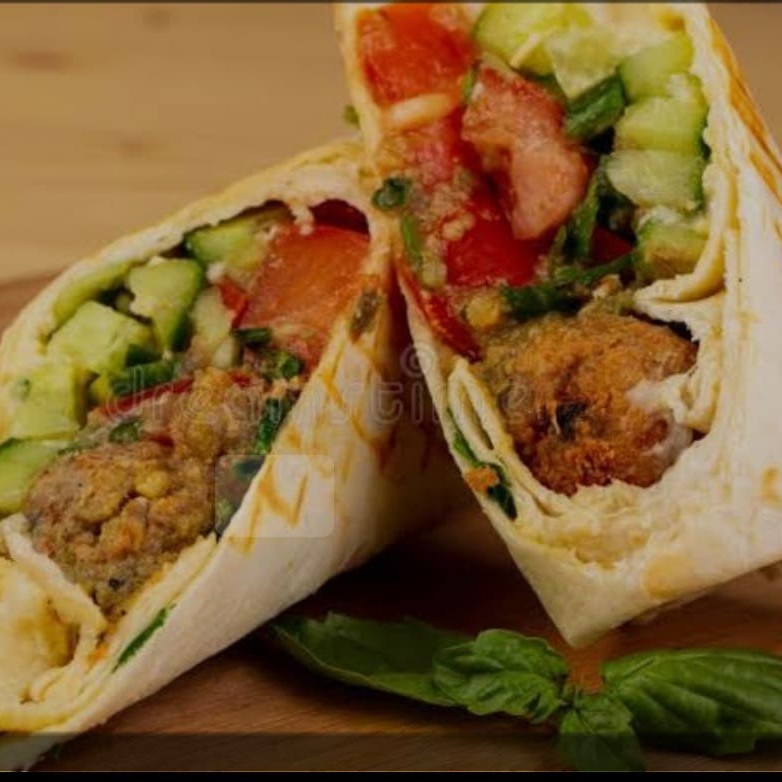 Saboreie nosso 'Kebab de Falafel', um lanche repleto de sabor e textura. Nele, você encontrará bolinhos de falafel perfeitamente temperados, alface fresca e crocante, tomates suculentos e maduros, pepinos que adicionam o toque crocante perfeito, picles deliciosamente azedos e a hortelã para um frescor inigualável. Tudo isso é cuidadosamente envolto em nosso pão sírio macio e levemente torrado. Aco