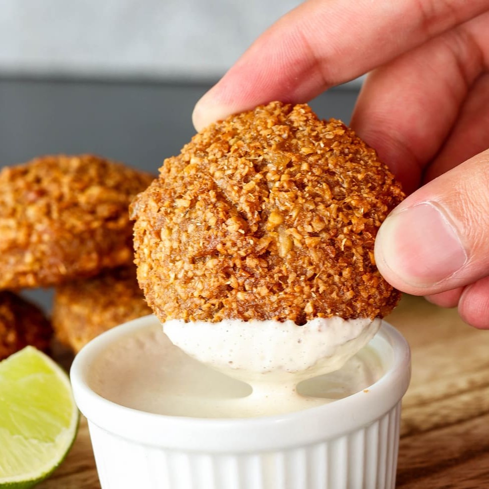 Delicie-se com nossos 8 crocantes bolinhos de falafel, feitos com grão de bico e sementes de gergelim, acompanhados de um sofisticado molho tahine (30g) e 1 porção de pão sírio.
