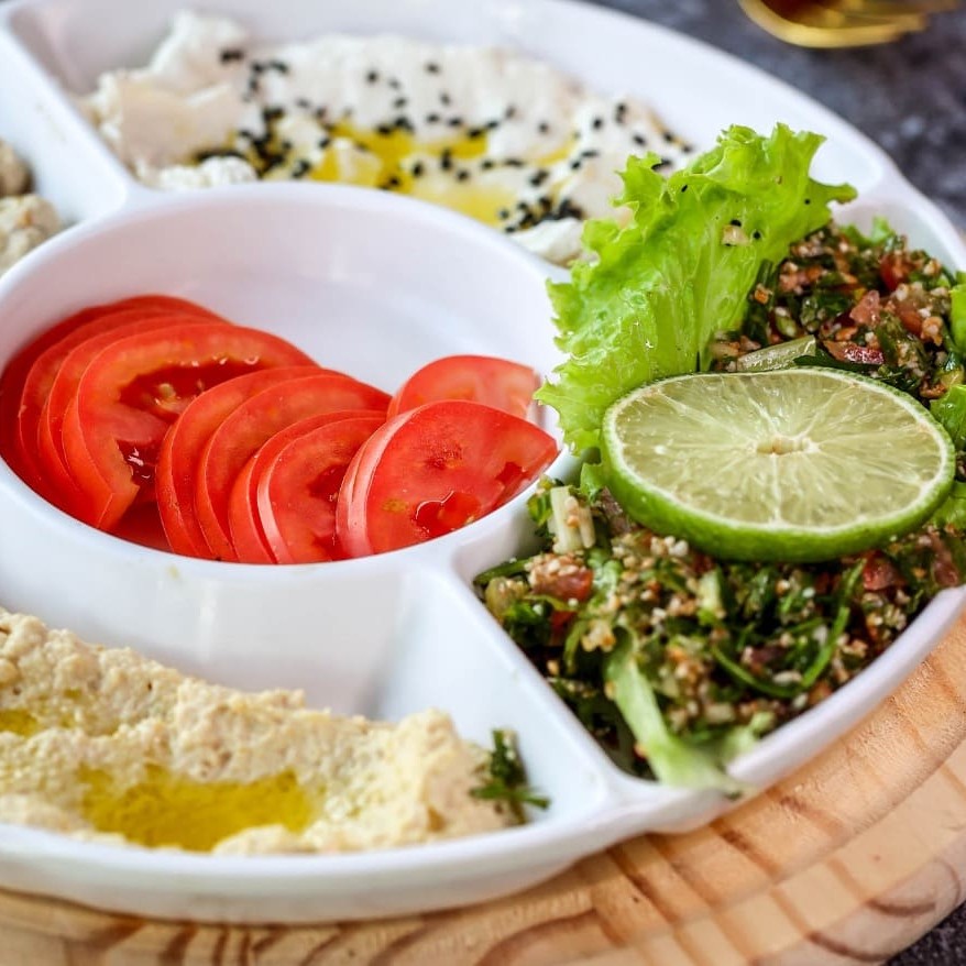 Delicie-se com o 'Combo 5', uma combinação sofisticada e perfeitamente equilibrada de três exclusivos pratos do Oriente Médio. Com 75g de pasta de homus cremosa e rica, 75g de baba ghanoush suave e defumada, e 75g de coalhada seca fresca e refrescante, este combo é uma explosão de sabores a cada mordida. Acompanhado de pão sírio fresco e crocante, cada componente desta combinação se complementa, p