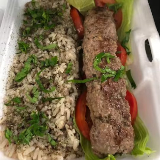 300gr de arroz marroquino , 01 espeto de kafta ,60 gr de coalhada seca .