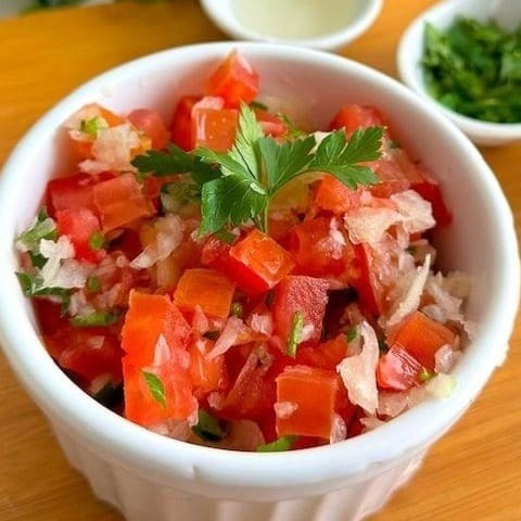 Uma deliciosa salada de vinagrete com tomate e repolho. (sem cebola)