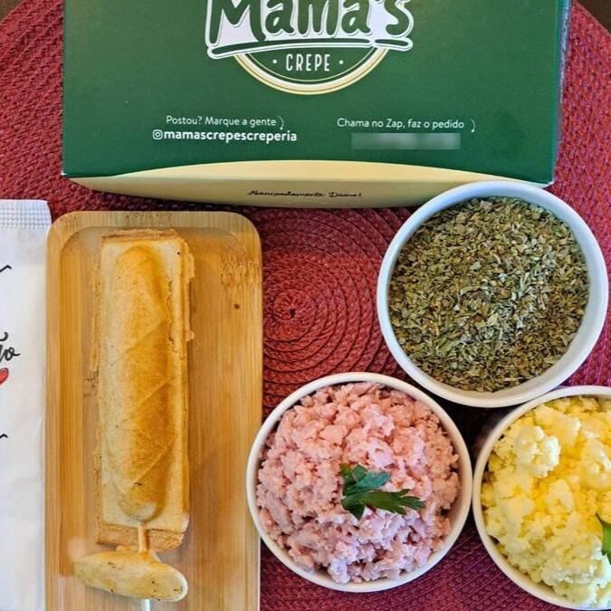 Desfrute do 'Combo Mama's' - nosso campeão de vendas! Este combo inclui um crepe salgado deliciosamente recheado com o sabor da sua escolha, acompanhado de um crepe doce irresistível e uma Coca Cola gelada de lata (350ml). Uma verdadeira explosão de sabores, com cada crepe pesando aproximadamente 190g de pura delícia. Desperte seus sentidos e saboreie essa maravilha! Por favor, mencione a sua opção de recheio em observações. (Promoção não válida para crepe de carne seca, palmito, atum e Sensação Ii e Nutella's).