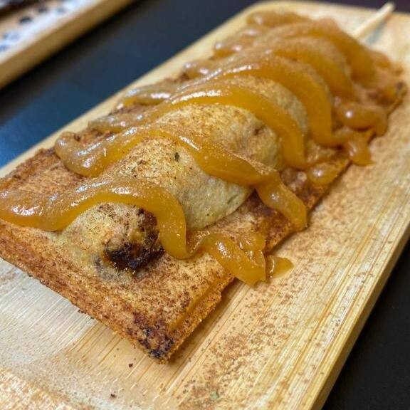 Delicie-se com o nosso 'Francês Banoffee', uma sobremesa irresistível da categoria 'Crepe Francês Doce'. Este crepe é generosamente recheado com um doce de leite cremoso e suave, acompanhado de fatias de banana fresca e polvilhado com canela aromática. Para finalizar, um chantilly leve e fofo é servido à parte, proporcionando a combinação perfeita de sabores. Uma verdadeira explosão de gostosuras que irá encantar o seu paladar!