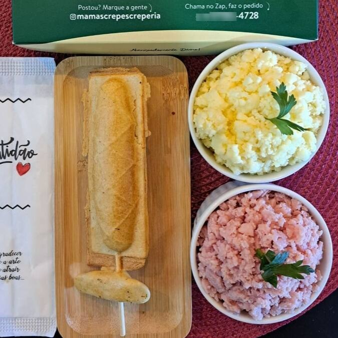 O 'Francês Caipira' é um crepe francês salgado excepcionalmente saboroso. O crepe é meticulosamente recheado com generosas porções de frango desfiado suculento, a cremosidade inigualável do Catupiry e o milho cuidadosamente selecionado para proporcionar um sabor único. Cada mordida levará seus sentidos a uma viagem gastronômica inesquecível. Uma combinação perfeita que certamente despertará o seu paladar!