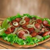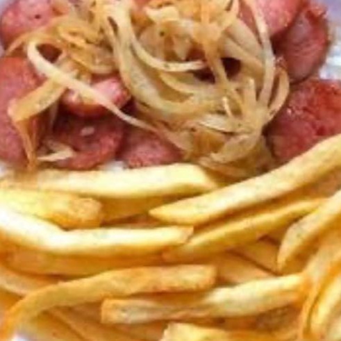 Marmitex de 750grs com Calabresa Fatiada Sem cebola, Feijao Carioca, Arroz e Fritas Para que a calabresa siga acebolada, solicite nos acompanhamentos.