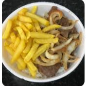 Marmitex de 750grs com Contra file, Feijao, Arroz e Fritas Tags: contra file, carne, frango