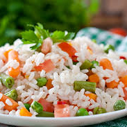 Arroz soltinho, com cenoura , ervilha e vagem , com um tempero diferenciado.