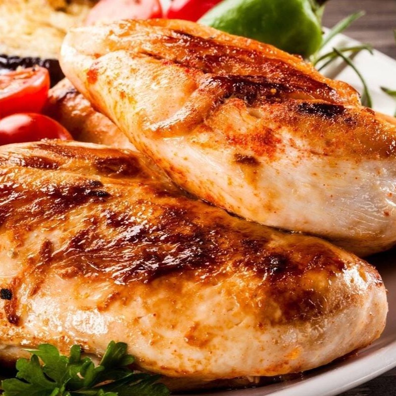 Filé de frango grelhado, arroz integral, mix de legumes e salada do Dia. Almoço/Marmita: servido em potes separados.
