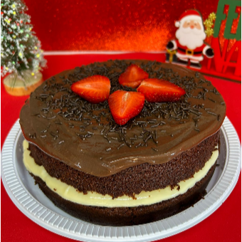 Bolo Grande massa fofinha recheado com brigadeiro com morangos com cobertura de brigadeiro 1,5kg