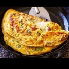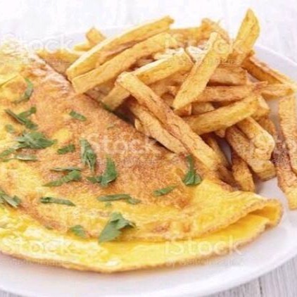 Omelete. Acompanha: arroz, feijão e macarrão!