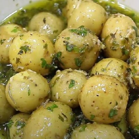 Batata bolinha, cebolinha, coentro, vinagre e azeite!