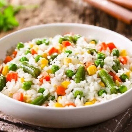 Arroz a grega, arroz , vagem e cenoura. Porção de 500g .