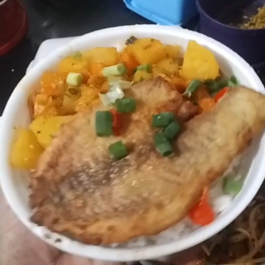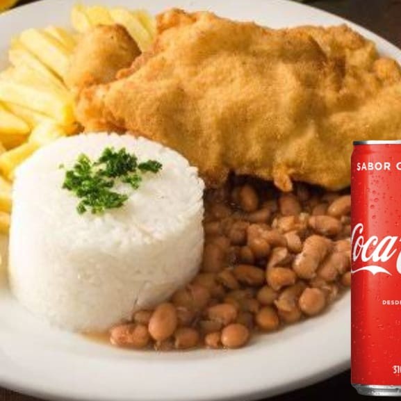 Filé de tilapia, arroz,feijão e legumes do Dia .