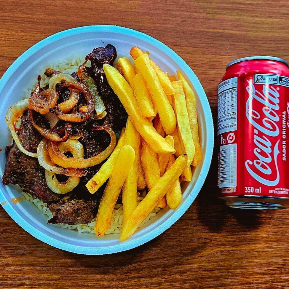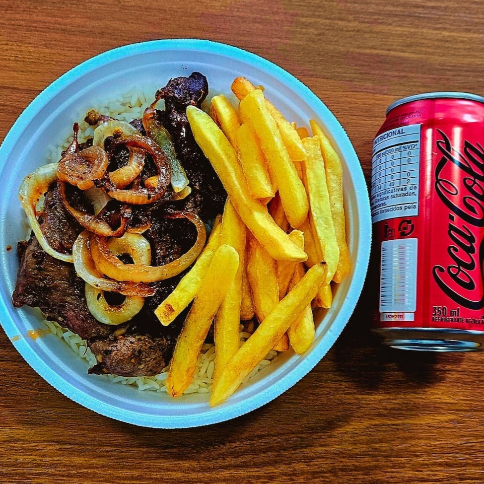 Contrafilé Acebolado + Fritas + Arroz E Feijão + Coca Lata Original