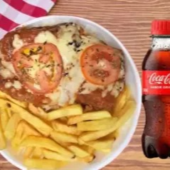 Marmitex File de Frango a Pizzaiolo Com Arroz e Fritas. + Coca- Cola 200ml